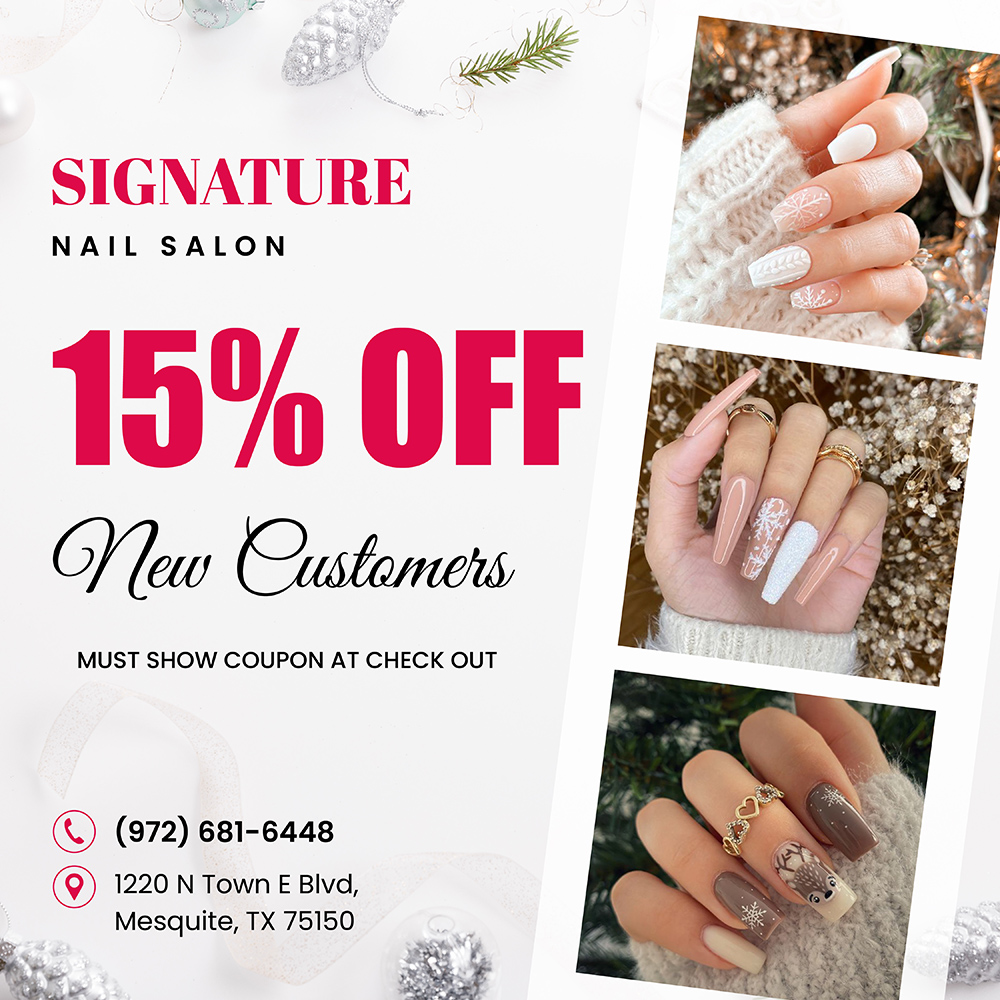 Signature Nail Salon is one of the best nail salon located conveniently in Mesquite, TX 75150. We guarantee your satisfaction by the passion and many years’ experience of our technicians.
